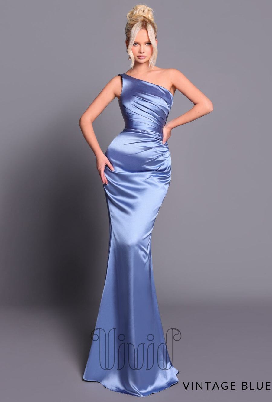 This elegant satin gown strikes the perfect balance between classic sophistication and contemporary flair. Featuring a one-shoulder neckline, it offers a sleek, flattering look that draws attention to your shoulders. The subtle side gathering at both the front and back shapes and contours your figure, while the fitted mermaid-style silhouette creates a striking, curve-enhancing effect that gracefully flares at the hem. With its timeless design and refined finish, this gown is ideal for formal occasions, weddings, or as a stunning bridesmaid dress, ensuring you stand out in effortless elegance.