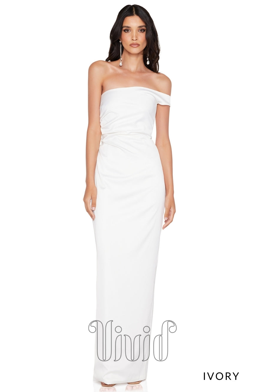 Leave a lasting impression with the timeless cut of this gown. This gown is crafted from a luxurious satin fabrication and features soft tucks & gathers at the side waist, an asymmetrical off-shoulder strap and split at the back hem for ease of wear. The dress also features an invisible zip closure at the centre back.