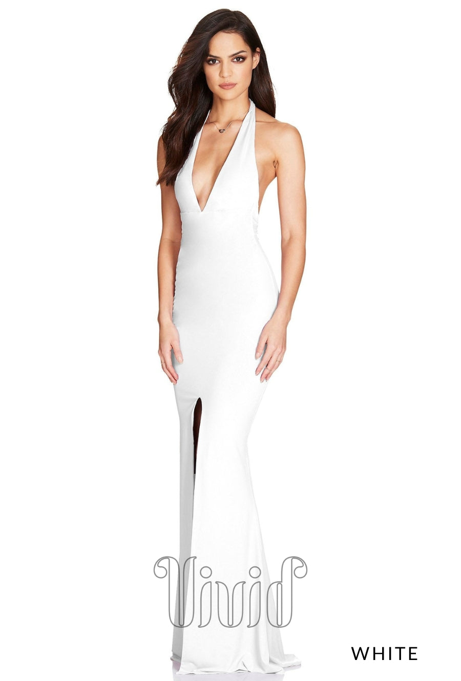 This glamorous full length fitted halter gown has a flattering ruched panel across back. The gown features a back neck tie fastening with invisible zipper at centre back, featuring rose gold Nookie puller. PROUDLY DESIGNED AND MADE IN AUSTRALIA.