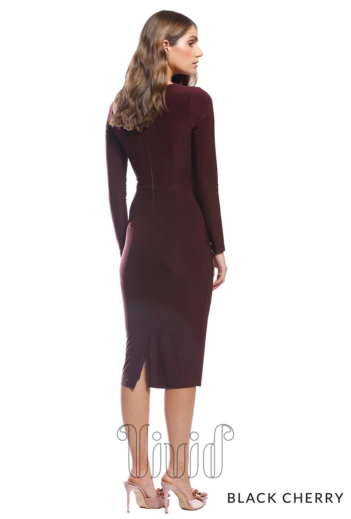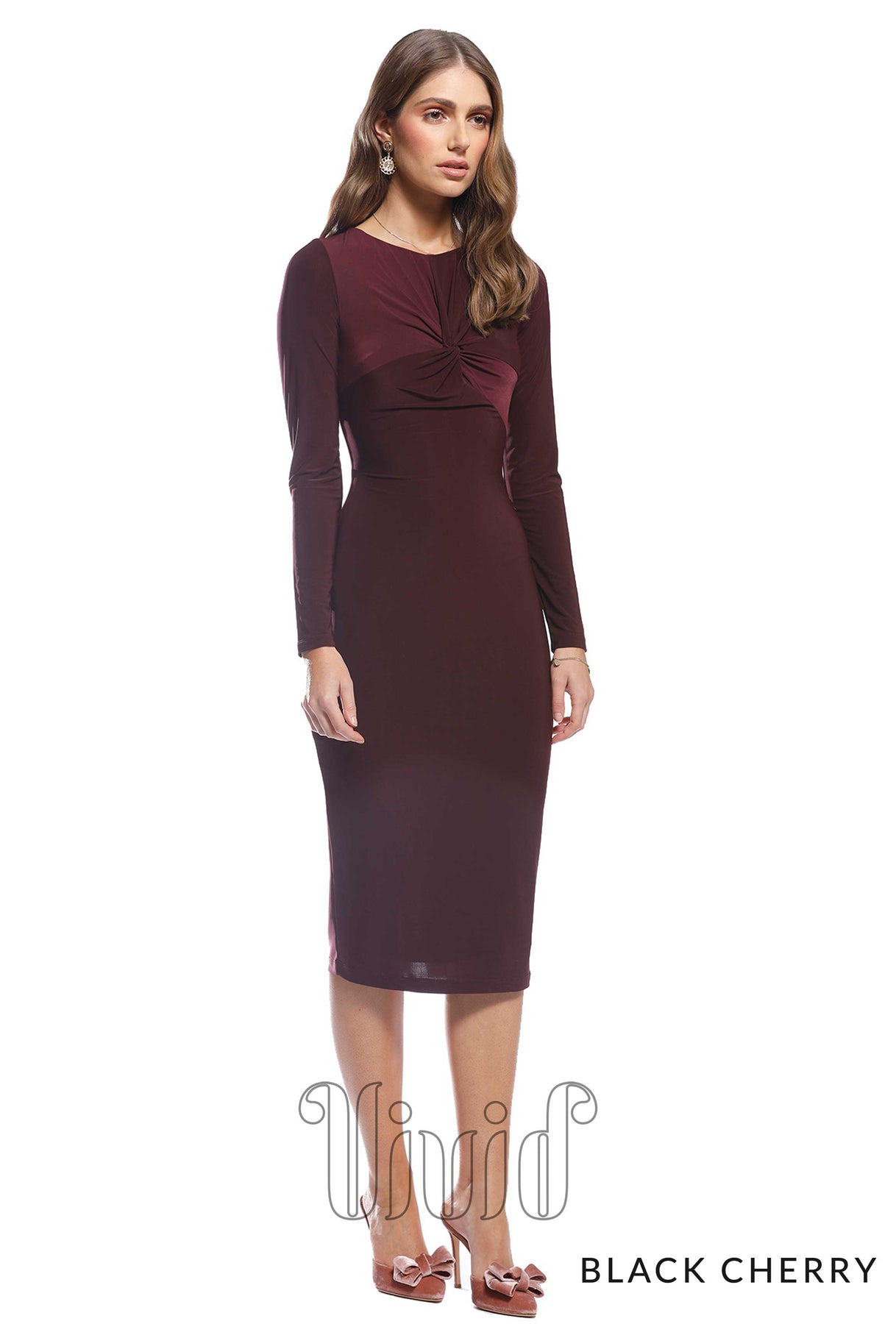 Sueded jersey dominates in rich autumnal shades featuring a central spiral knot creating shape and fitting over the bust hugging the waist and hip to the hem. Neat cut sleeves balance this high end look which is also fully lined throughout. DESIGNED & MADE IN AUSTRALIA.